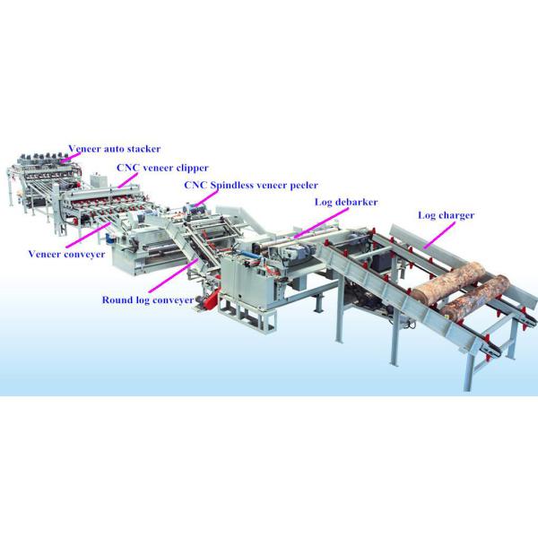 Thi sline include: log conveyor, log debarker, spindless veneer peeling lathe, veneer rotary clipper, veneer auto stacker. All line are only need 2-3 people.